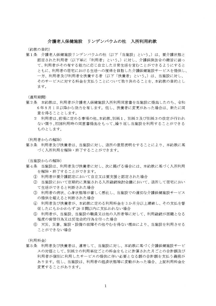 リンデンバウムの杜(入所)約款 R6.8.1~